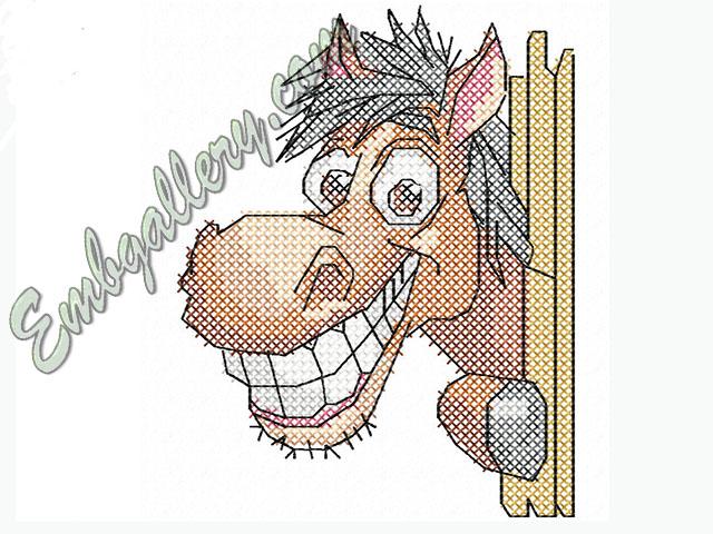 Подарок к покупке от 20$ в декабре 2025 Дизайн машинной вышивки крестиком "Коня вызывали?" 110x143mm; St: 10879; Clrs: 2/2; В архиве форматы: DST PES VIP VP3 HUS JEF
