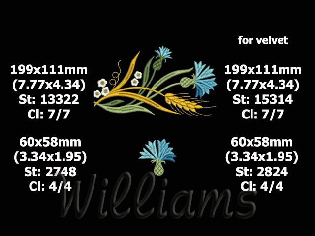 Набор из 2 дизайнов машинной вышивки. Каждый из дизайнов в двух вариантах: для гладкой ткани и для бархата.