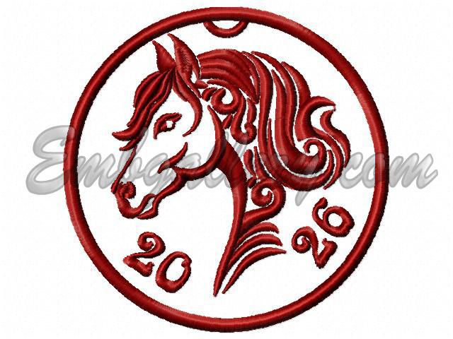 Дизайн машинной вышивки "Огненная красная лошадь"_2026